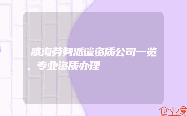 - 威海劳务派遣资质公司一览:专业资质办理解析一、劳务派遣资质概述劳务派遣作为一种特殊的就业形式,在促进劳动力流动和满足企业灵活用工需求方面发挥着重要作用。在威海地区,从事劳务派遣业务的企业需具备相应的资质。这些资质包括从事劳务派遣业务的许可和
