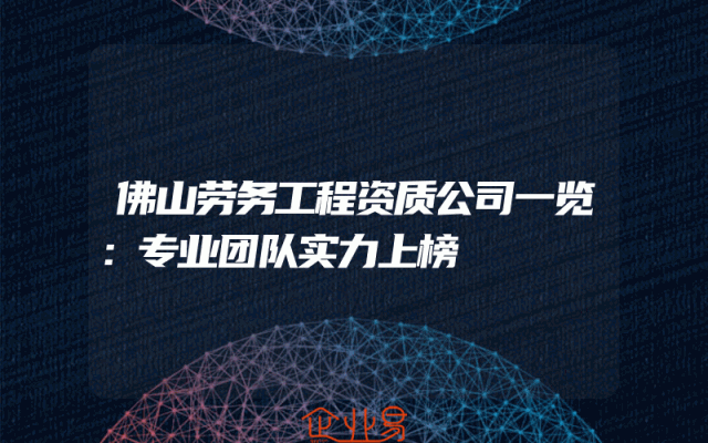 - 佛山劳务工程资质公司一览:专业团队实力上榜