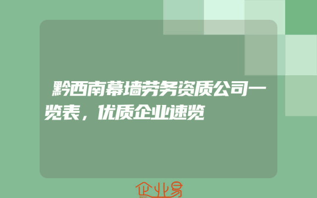 - 黔西南幕墙劳务资质公司一览表,优质企业速览
