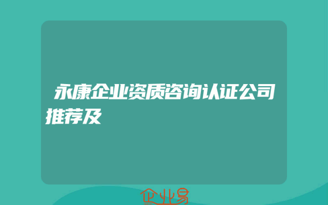 - 永康企业资质咨询认证公司推荐及解析一、引言随着市场竞争的日益激烈,企业对资质认证的需求越来越大。永康市作为经济发达的地区,拥有众多的企业资质咨询认证公司。本文旨在解析永康企业资质咨询认证公司及其服务,为企业提供选择参考。二、永康企业资质咨询