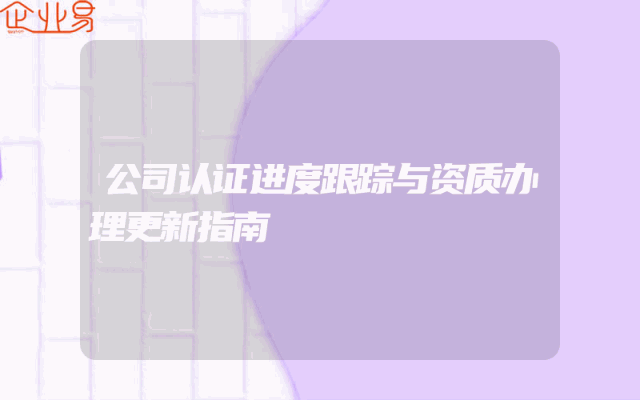 - 公司认证进度跟踪与资质办理更新指南一、企业认证进度的实时跟踪在现代企业管理中,企业的认证进度及其资质办理成为了不可或缺的重要环节。对于企业和其合作伙伴来说,了解并掌握公司认证进度的跟踪方法,有助于确保业务顺利进行,提高合作方的信任度。首先,