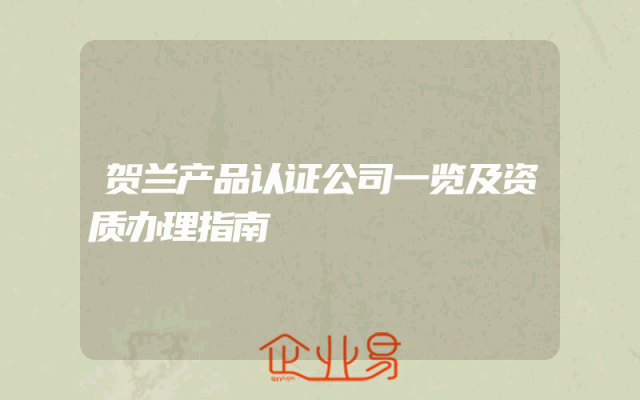 - 贺兰产品认证公司一览及资质办理指南一、贺兰产品认证公司概览贺兰地区作为经济发展的重要区域,拥有众多产品认证公司,为企业提供全方位的资质办理服务。这些认证公司涵盖了多个行业领域,包括但不限于电子信息、机械制造、化工材料以及食品医药等。它们致力