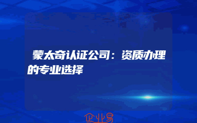 - 蒙太奇认证公司:资质办理的专业选择一、资质办理的重要性在当今竞争激烈的市场环境下,企业资质的重要性愈发凸显。对于蒙太奇认证公司而言,拥有全面的资质不仅代表了企业的实力和专业性,更是开展业务、赢得客户信赖的关键。因此,资质办理是蒙太奇认证公司