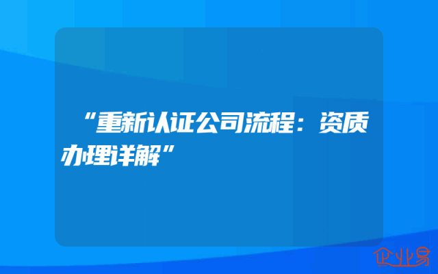 - 重新认证公司流程:资质办理详解了解资质办理的重要性对于任何一家公司来说,资质是其运营的基础,也是其信誉的保障。随着市场环境的不断变化,企业资质的办理和更新成为一项重要的任务。重新认证公司的流程,不仅是对企业运营能力的检验,更是对其合规性的审