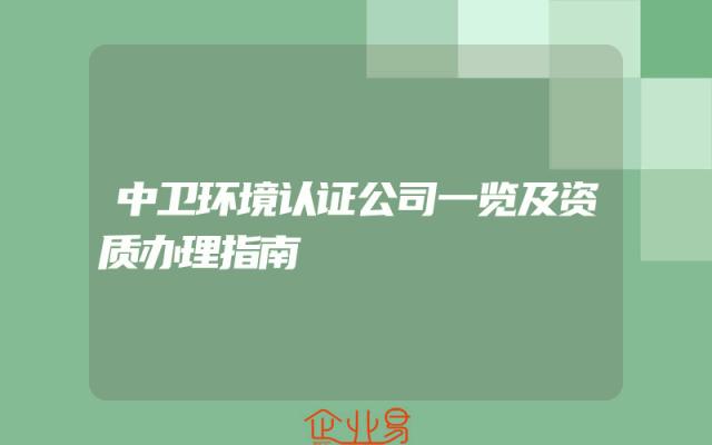 - 标题:卫环境认证公司一览及资质办理指南一、卫环境认证公司概览卫环境认证公司概览随着环境保护意识的加强,卫环境认证公司作为企业服务领域的新兴力量,正逐渐受到广大企业的关注和重视。这些公司致力于为企业提供专业的环保认证服务,助力企业实现可持续发