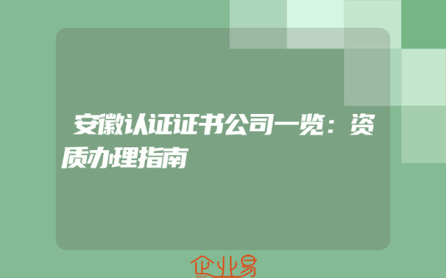 - 安徽认证证书公司一览:资质办理指南一、安徽认证证书公司概述安徽省内拥有众多认证证书公司,这些公司为企业提供不同种类的资质认证服务,包括ISO质量管理体系认证、环境认证、职业健康安全认证等。随着市场竞争的加剧,企业越来越注重资质的提升和认证,