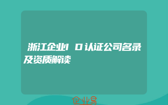 - 浙江企业ID认证公司名录及资质解读一、浙江企业ID认证概述随着市场竞争的加剧,企业对资质认证的需求愈加旺盛。浙江地区作为企业发展的重要热土,众多企业纷纷寻求合规经营和资质提升。企业ID认证作为证明企业实力和信誉的重要方式之一,在浙江地区得到