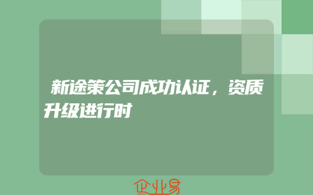 - 新途策公司成功认证,资质升级进行时一、喜讯传来:新途策公司成功认证近日,新途策公司经过不懈努力和严格审核,成功获得了权威机构的认证。这一认证不仅证明了公司在业务运营、内部管理等方面的规范性,也标志着公司实力得到了业界的肯定。对于新途