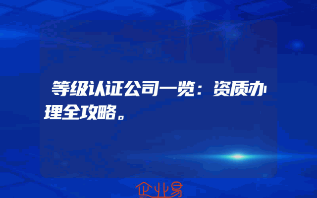 - 等级认证公司一览:资质办理全攻略一、等级认证公司概述随着市场竞争的日益激烈,企业为了提升自身信誉和竞争力,纷纷寻求等级认证。等级认证公司在此过程中扮演着重要角色,它们帮助企业完成资质审核,获取相应资质证书。本文将为您详细介绍等级认证公司的资