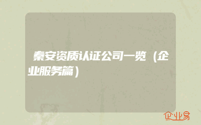 - 秦安资质认证公司一览(企业服务篇)一、秦安资质认证公司概述在秦安地区,众多企业服务行业中,资质认证公司以其专业性和重要性脱颖而出。这些公司致力于为企业提供全方位的资质办理服务,帮助企业顺利获取各类资质认证,从而提升企业竞争力。二、秦安资质认
