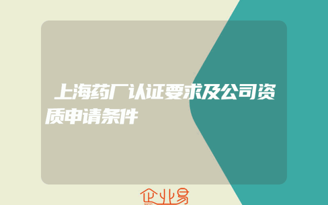 - 上海药厂认证要求及公司资质申请条件