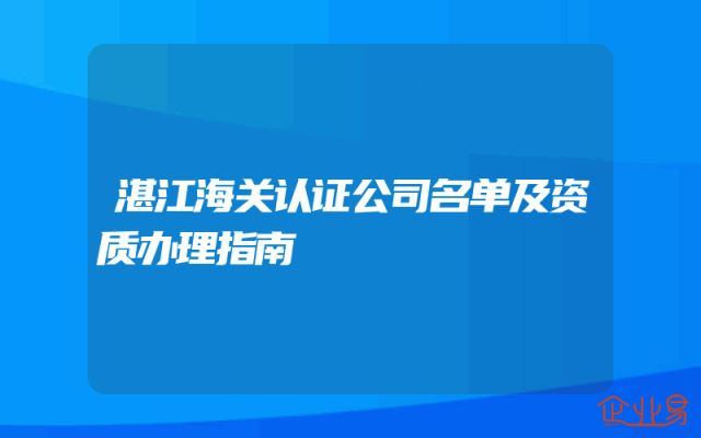 - 湛江海关认证公司名单及资质办理指南
