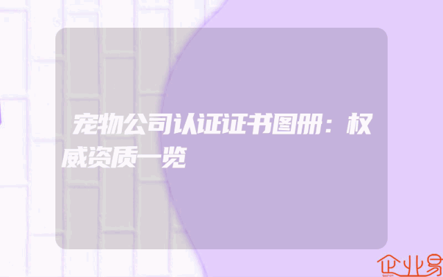 - 宠物公司认证证书图册:权威资质一览随着宠物市场的繁荣与发展,众多宠物公司如雨后春笋般涌现。为了保障消费者的权益和宠物的健康,权威认证成为了宠物公司不可或缺的资质证明。下面为大家呈现宠物公司认证证书图册,带你一览权威资质。一、认证机构介绍宠物