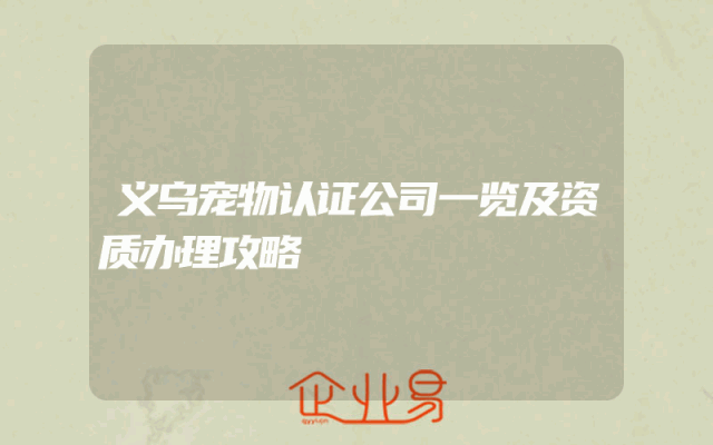 - 义乌宠物认证公司一览及资质办理攻略