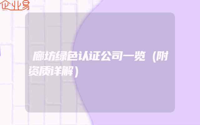 - 廊坊绿色认证公司一览(附资质详解)