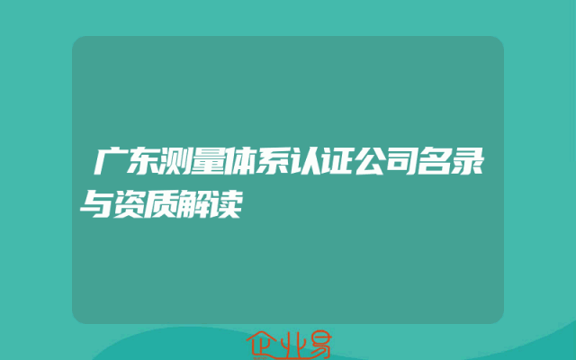 - 广东测量体系认证公司名录与资质解读