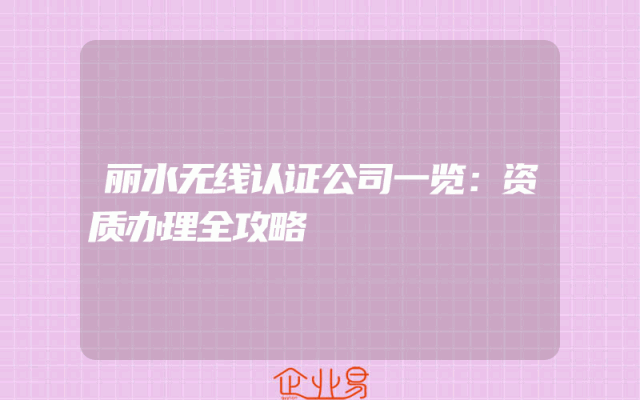 - 丽水无线认证公司一览:资质办理全攻略