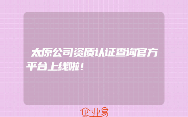 - 太原公司资质认证查询官方平台上线啦!
