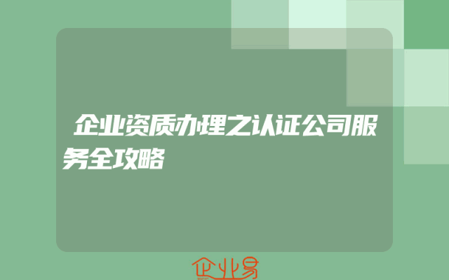 - 企业资质办理之认证公司服务全攻略
