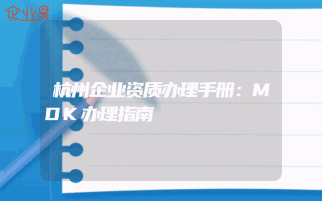 - 杭州企业资质办理手册:MDK办理指南