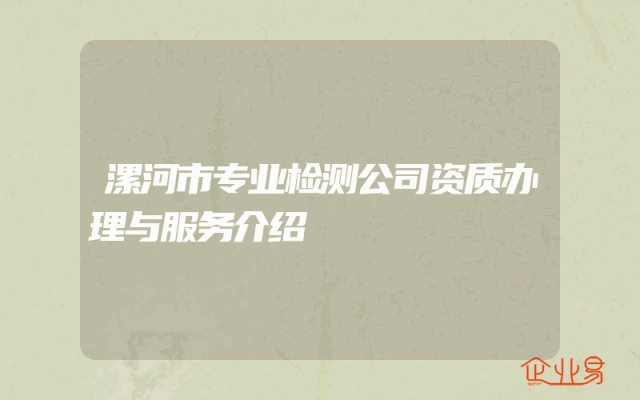 - 漯河市专业检测公司资质办理与服务介绍一、资质办理概述在漯河市,随着检测行业的迅速发展,专业检测公司的资质办理成为企业进入市场的重要门槛。为满足市场需求,企业需具备相应的资质方可开展业务。本文将详细介绍漯河市专业检测公司资质办理流程及