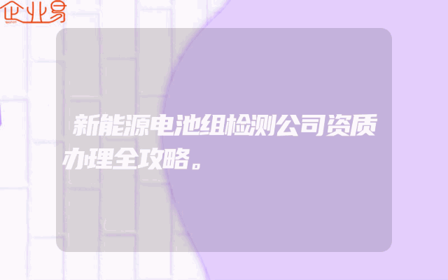 - 新能源电池组检测公司资质办理全攻略一、了解新能源电池组检测公司业务范围在开始资质办理之前,首先需明确公司主营业务范围和所涉及的新能源电池类型。新能源电池组检测作为高技术含量的领域,涵盖了电池的性能测试、安全性评估、寿命预测等多个方面。因此,