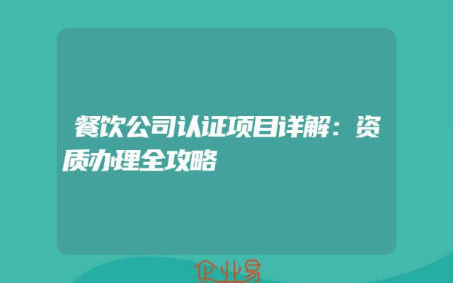 - 餐饮公司认证项目详解:资质办理全攻略作为餐饮行业从业者,都知道在这个市场竞争日益激烈的背景下,如何为自己的餐饮公司获取合法的经营资质是至关重要的。下面我们将详细解析餐饮公司的认证项目及其资质办理全攻略。希