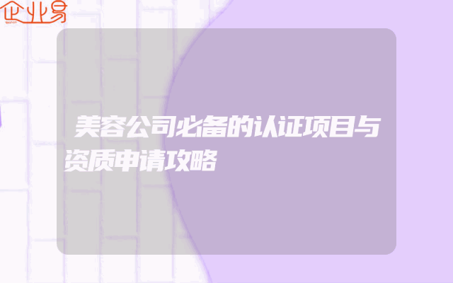 - 美容公司必备的认证项目与资质申请攻略一、引言随着美容行业的快速发展,市场竞争愈发激烈。对于美容公司而言,要想在行业中立足,除了拥有优质的产品和服务外,还必须具备相应的认证项目和资质。本文将详细介绍美容公司必备的认证项目和资质申请攻略,帮助企