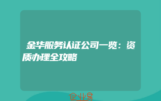 - 金华服务认证公司一览:资质办理全攻略一、金华服务认证公司概述金华作为浙江省的重要城市,拥有众多服务认证公司,涵盖了咨询、培训、审核等多个领域。这些公司在帮助企业提升管理水平、优化业务流程等方面发挥了重要作用。二、资质办理流程对于想要开展服务