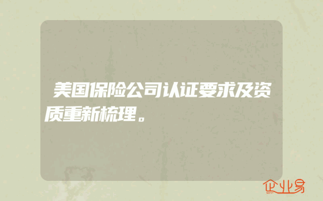 - 美国保险公司认证要求及资质梳理一、美国保险行业概述美国作为全球最大的经济体之一,其保险行业亦十分发达。在美国开展保险业务,需要经过严格的认证和满足一系列的资质要求,以确保保险公司的合规性和可靠性。这些要求涉及多个方面,包括财务稳定性、组织架