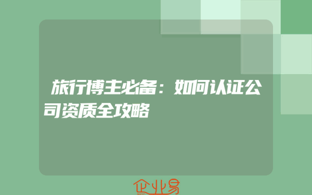 - 旅行博主必备:如何认证公司资质全攻略了解各类企业资质的重要性和必要性随着自媒体时代的快速发展,旅行博主已经成为一道独特的风景。许多旅行博主在分享世界美景的同时,也开展起相关业务,如推荐旅游线路、提供旅游服务等。这时,一个具备合法资质的公司身