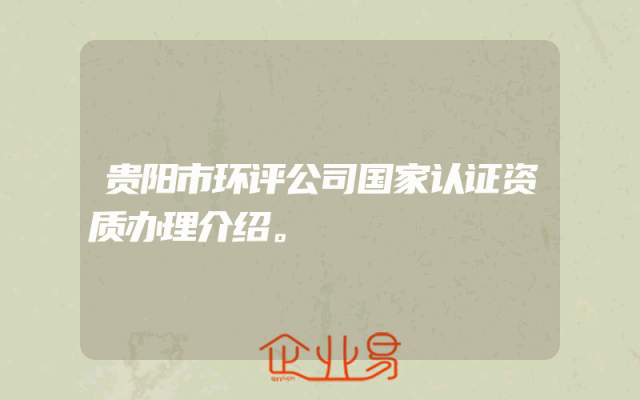 - 贵阳市环评公司国家认证资质办理介绍一、引言随着环保意识的日益增强,环评工作成为企业发展的重要环节。在贵阳市,环评公司的国家认证资质办理对于保障环境安全、促进经济可持续发展具有重要意义。本文将详细介绍贵阳市环评公司国家认证资质的办理流