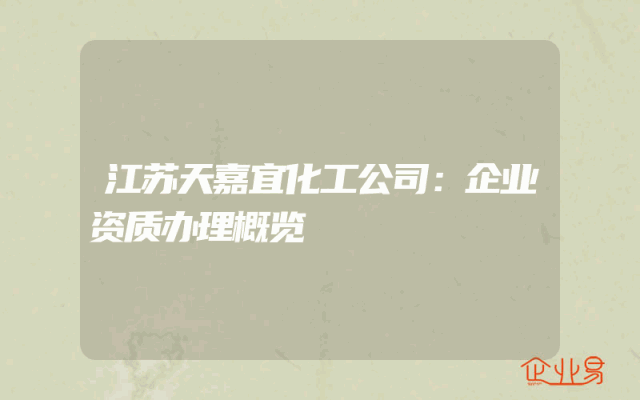 - 江苏天嘉宜化工公司:企业资质办理概览