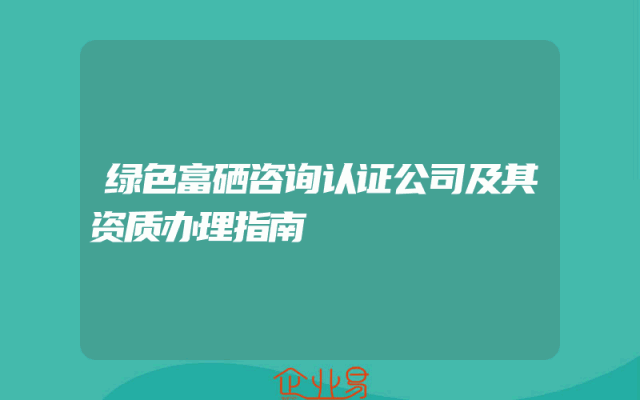 - 绿色富硒咨询认证公司及其资质办理指南