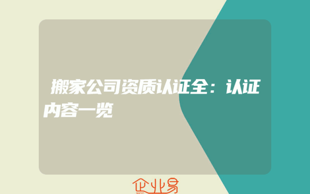- 搬家公司资质认证全:认证内容一览