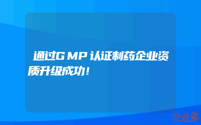 - 通过GMP认证制药企业资质升级成功!