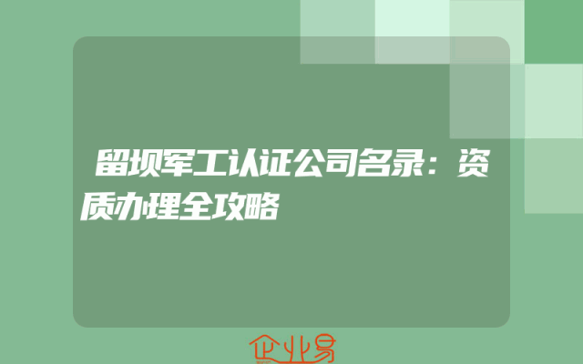 - 留坝军工认证公司名录:资质办理全攻略
