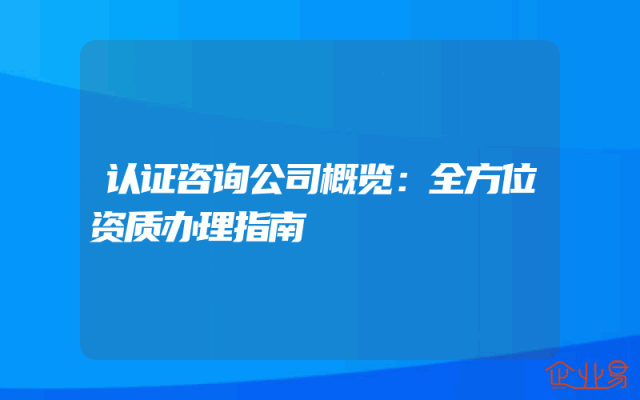 - 认证咨询公司概览:全方位资质办理指南