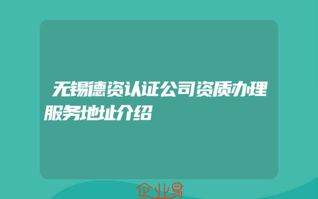 - 无锡德资认证公司资质办理服务地址介绍