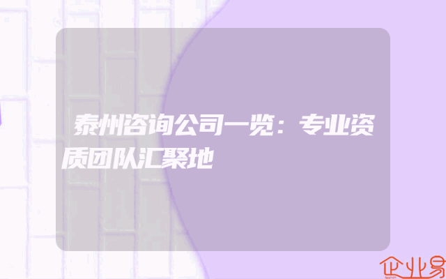 - 泰州咨询公司一览:专业资质团队汇聚地