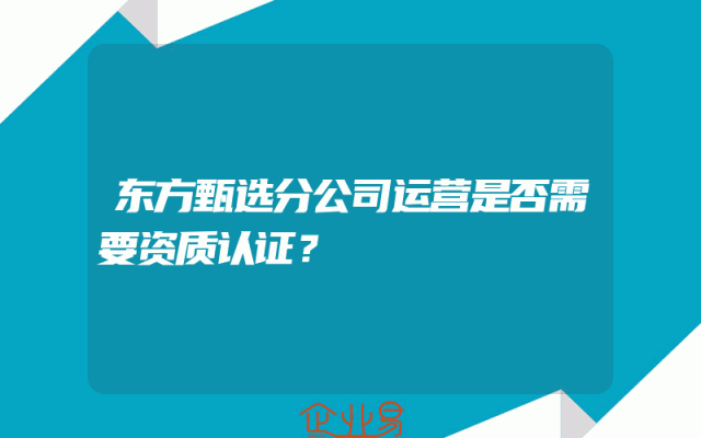 - 东方甄选分公司运营是否需要资质认证?