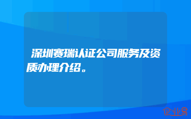 - 深圳赛瑞认证公司服务及资质办理介绍。