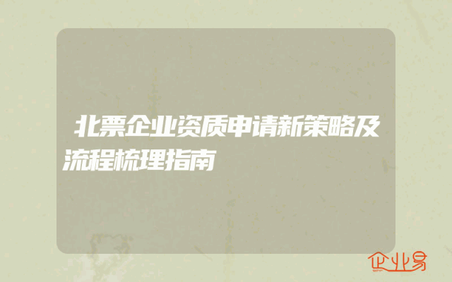 - 北票企业资质申请新策略及流程梳理指南