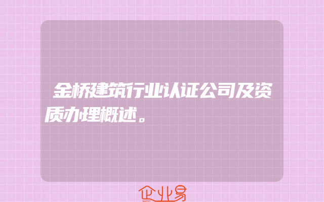 - 金桥建筑行业认证公司及资质办理概述。