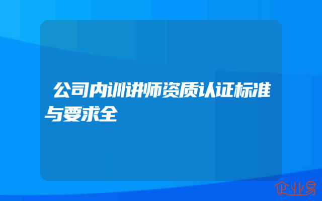 - 公司内训讲师资质认证标准与要求全