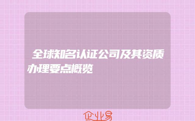 - 全球知名认证公司及其资质办理要点概览一、全球知名认证公司的概述在全球化的商业环境中,认证公司的角色愈发重要。这些公司不仅为各类企业提供认证服务,而且帮助企业在国际市场上获得信誉和竞争力。知名的认证公司如ISO质量认证公司、UL安全认证公司等
