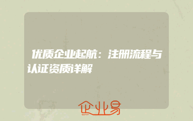 - 优质企业起航:注册流程与认证资质详解一、优质企业的注册流程对于想要开启商业航程的优质企业来说,了解并掌握企业注册流程是首要的步骤。企业注册流程不仅关乎企业的合法性,也影响企业的运营效率和市场竞争力。首先,企业名称的选定是关键。一个好的名称能