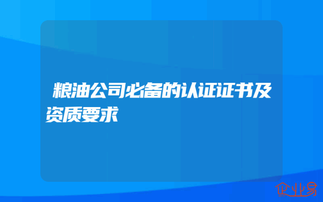 - 粮油公司必备的认证证书及资质要求解析一、粮油行业概况与认证证书的重要性在当今社会,粮油行业作为国民经济的重要组成部分,其产品质量直接关系到广大人民群众的日常生活与健康。因此,粮油公司要想在激烈的市场竞争中立足,必须满足一系列认证证书及资质要