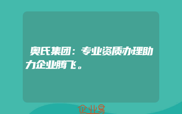 - 奥氏集团:专业资质办理助力企业腾飞。