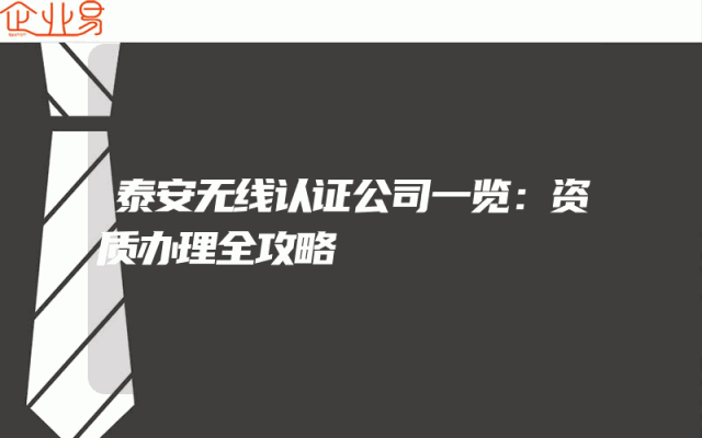 - 泰安无线认证公司一览:资质办理全攻略一、泰安无线认证公司概述随着信息技术的飞速发展,无线通信技术日益普及,泰安地区的无线认证公司也应运而生。这些公司为企业提供无线产品认证服务,确保无线产品的合规性和质量。在众多的无线认证公司中,如何选择合适